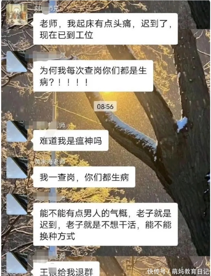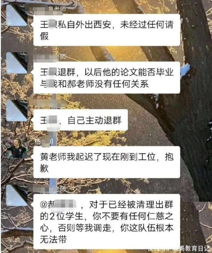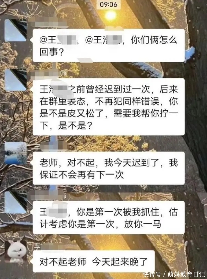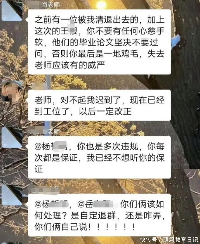 然而这件事情并莫得完,对于学生的迟到的事情,导师月旦了,况且要一个处理效果。当先对于莫得请假就出门的同学径直清退了群聊。