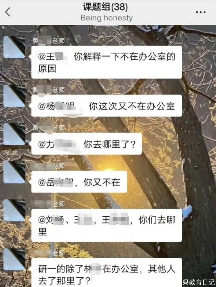 事情的启事便是因为导师查岗,发现好多学生齐不在办公室,研一的学生唯唯一个东说念主在办公室,研二和研三好多东说念主齐不在,而且还包括一位莫得预先请假暗里去了西安的学生,这引起了导师的极大不悦。
